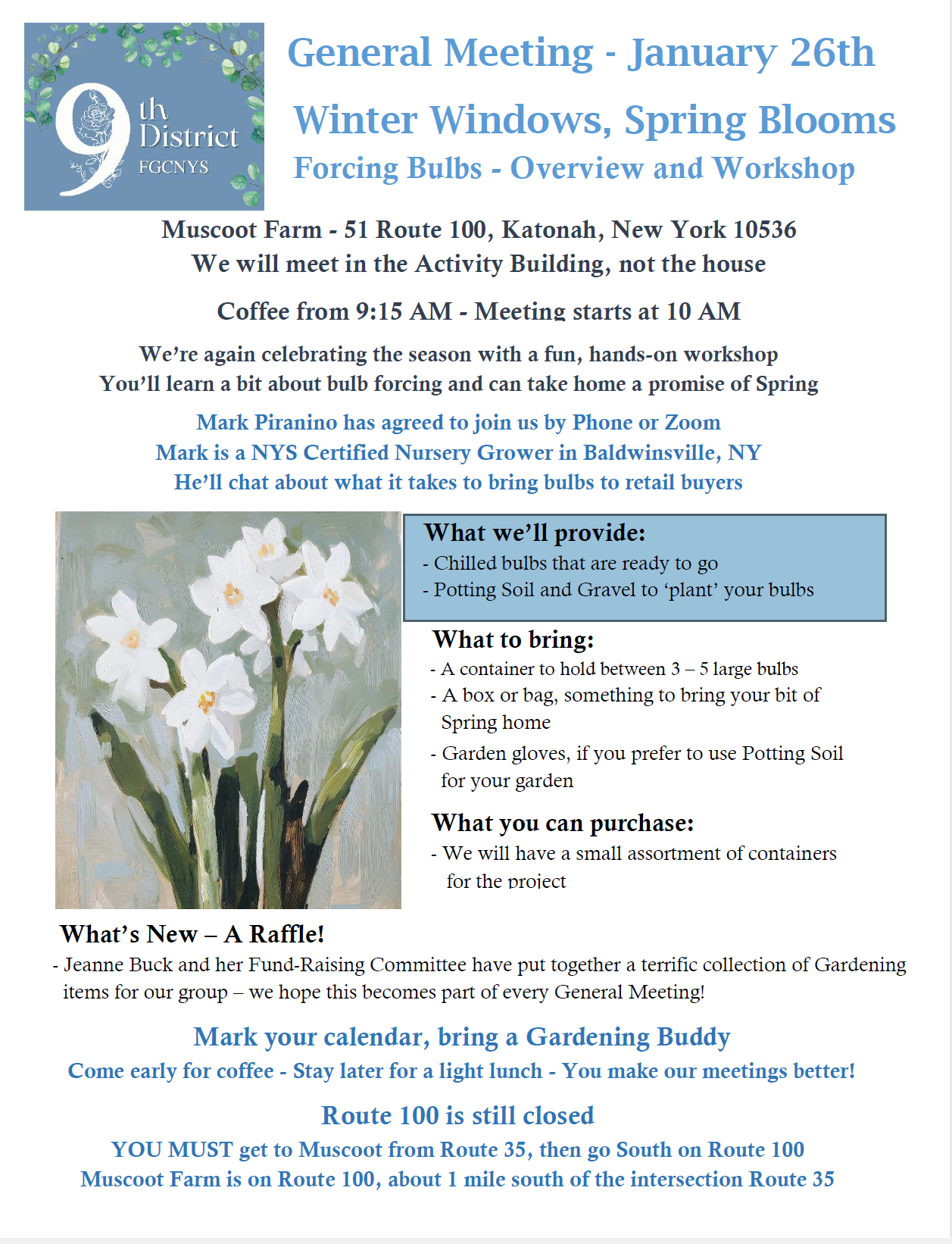 THE GENERAL MEETING & BULB PROGRAM ARE RESCHEDULED TO